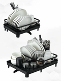 Installation is quick and hassle-free no tools required. Simply follow the included guide to set up your kitchen drainer rack in minutes. The package includes one extendable dish rack, one utensil holder, one drainboard, and one swivel spout. With a large capacity, this dish rack can hold up to 10 plates, 6 bowls, 4 wine glasses, 6 cups, and 30 pieces of cutlery. Its smart, space-saving design makes drying dishes faster and more convenient, keeping your kitchen perfectly organized after cooking or entertaining guests.